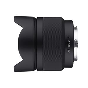 De Samyang AF 12mm F/2 voor Sony E is een autofocus ultra-groothoekobjectief met vastbrandpunt ontworpen voor Sony systeemcamera's met APS-C sensor. Deze autofocus prime heeft een beeldhoek die gelijk is aan die van een 18mm lens op een Full-Frame camera. De Samyang AF 12mm F2 E heeft een groot F/2.0 diafragma, waardoor een lagere ISO of een snellere sluitertijd mogelijk is bij het vastleggen van o.a. astrofotografie. De optische opbouw bestaat uit 12 elementen in 10 groepen met 5 speciale lenzen (1 H-ASP, 1 ASP en 3 ED); drie extra-lage dispersie lenselementen en twee asferische (H-ASP & ASP) elementen. Deze laatste zijn opgenomen in het optische ontwerp om zo chromatische aberraties en vervorming tot een minimum te kunnen beperken, en zo scherpere opnamen te kunnen realiseren.